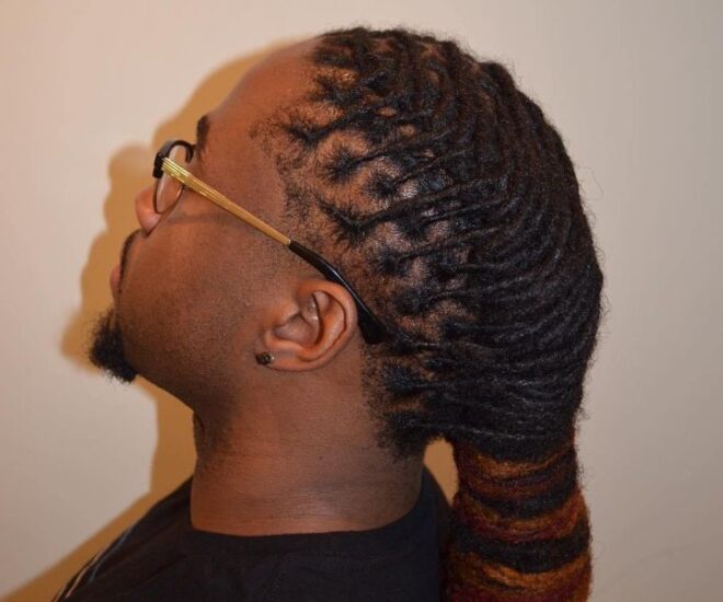 This hairstyle is not as long-lasting as the other men’s braids styles, so perfect if you love to change your look regularly. When you have your hair in plaits, all you need to do is oil your scalp occasionally and wrap your hair up at night. Super easy to look after, easy to do, and can look great!