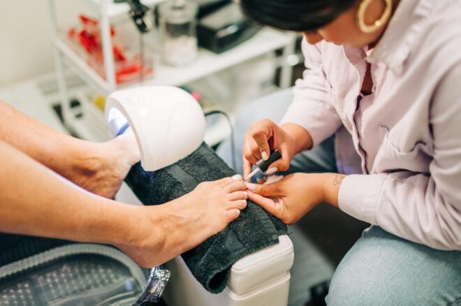 Once your nails are dry, apply a generous amount of foot cream or moisturizer to hydrate your skin. Regular moisturization is key to maintaining soft, smooth feet between pedicures.